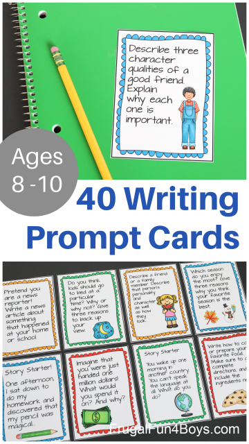 Inspire your children to write with these 40 writing prompt cards. This free download includes ideas for a variety of writing styles – narrative, persuasive, descriptive, and how-to. There are even a couple of cards that are research topics. Visit this page to access the writing prompt cards.